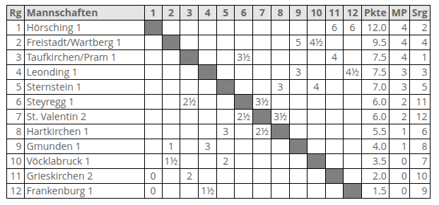 Auf zur zweiten Runde. Steyregg ist bei uns zu Gast und auf fast jedem Brett mit circa 200 ELO-Punkten weniger ausgestattet. Ein hoher Sieg also garantiert? Tja, sollte man meinen. Schach hat allerdings so seine Tücken, und der Aussagekraft der Papierform darf man nur sehr eingeschränkt vertrauen. Sie besteht nämlich nur auf dem Papier.